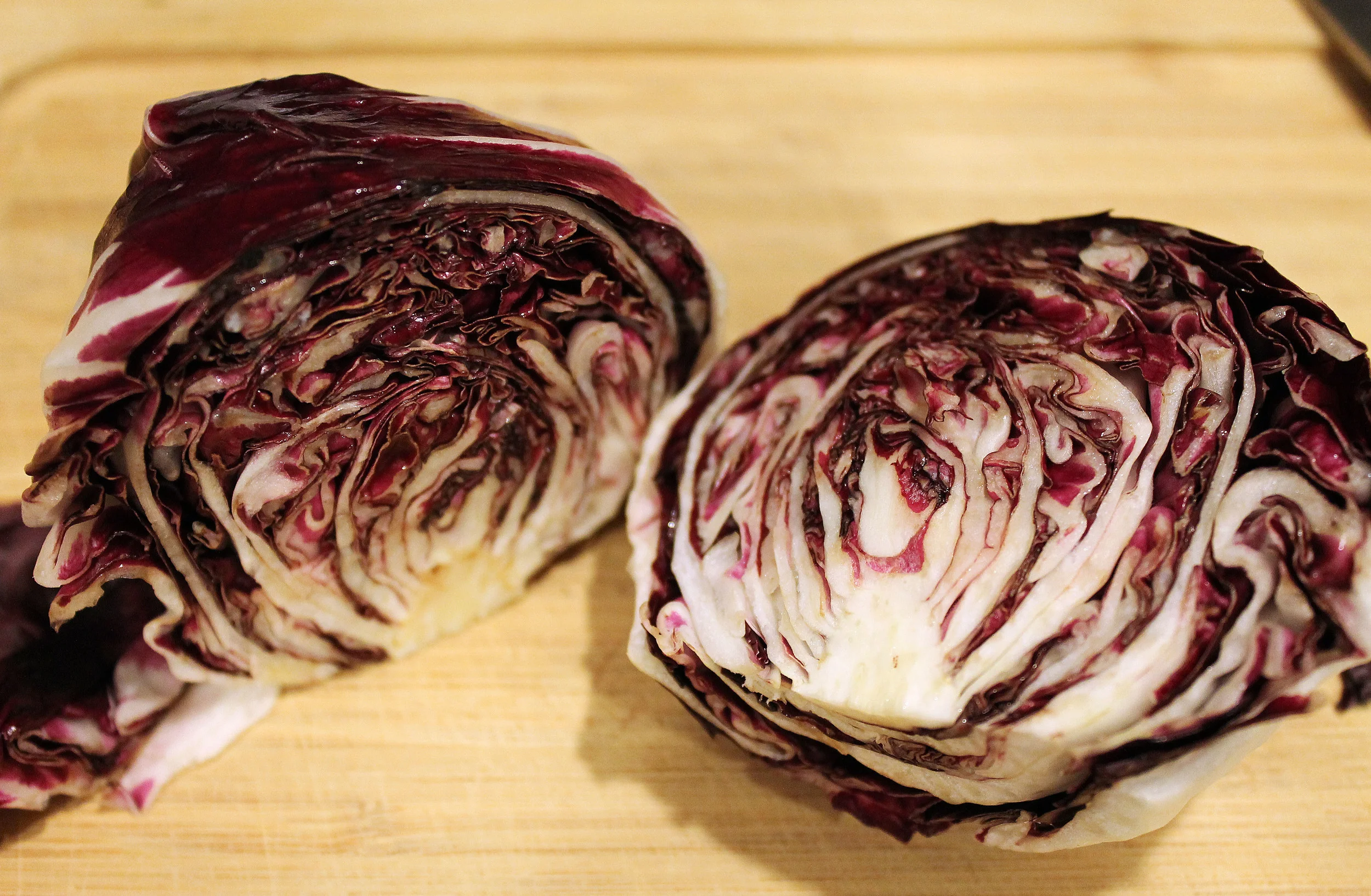 Half a very small head of radicchio, or an appropriate chunk of a larger head, thinly sliced/shreded