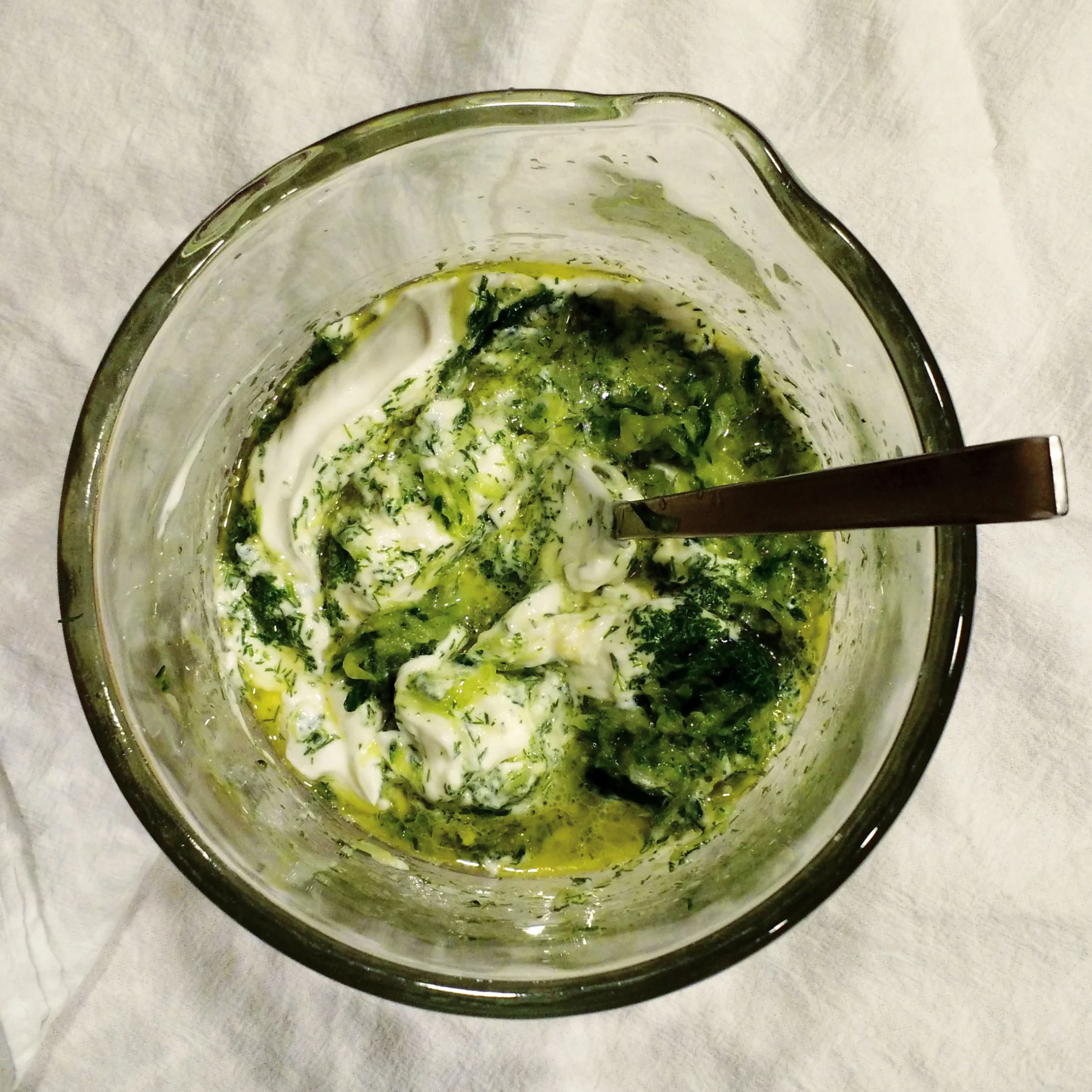 at least 2 tablespoons minced fresh dill- feel free to include more! I often use 4 tablespoons or more.