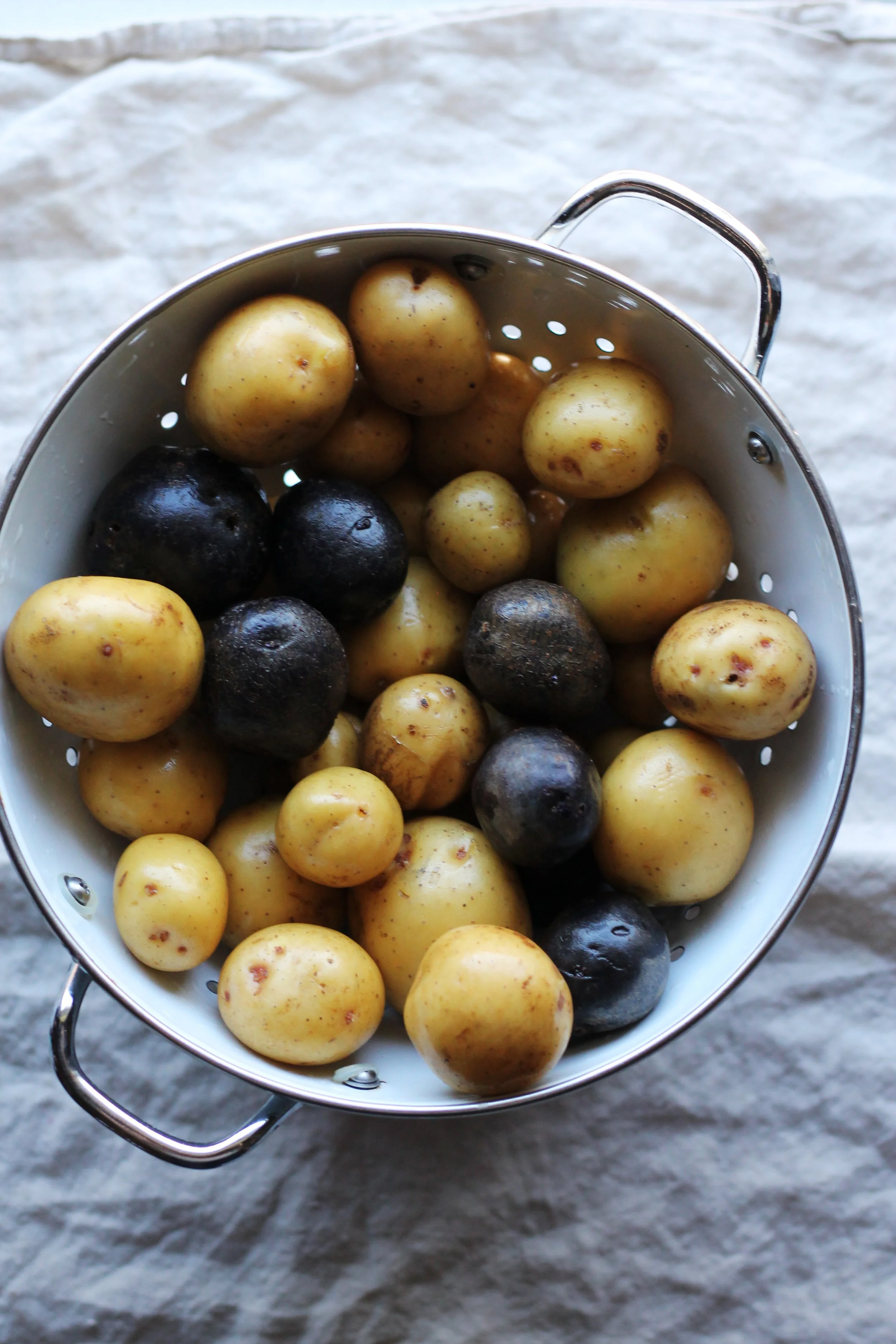 To assemble, put drained potatoes back into their pot and pour basil sauce over top. Add half the radishes and all the serranos and mix gently to combine. Peel eggs and cut in half lengthwise, add to the pot and turn to coat in the dressing. Transfer to a serving bowl or platter and top with the remaining radishes. Finish with a sprinkle of flaky salt.