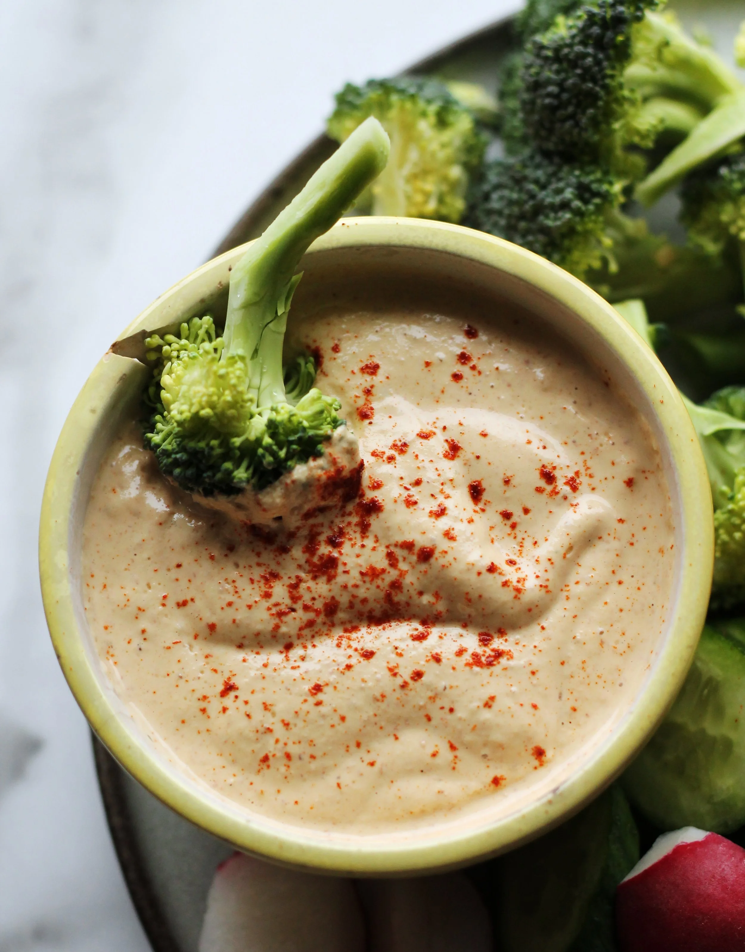 This is a copycat recipe for the delicious Bitchin Sauce found at Whole Foods. My partner’s twin’s wife Heather turned me on to it, they call it “kitchen sauce” because, well, they have small children. Heather sent me the link to The Faux Martha’s copycat recipe, which I immediately tweaked just a tad and made my own. This sauce is stupidly good and turned me into a person who will just eat a raw head of broccoli— as long as I have this sauce handy. I have never been this sort of person before. Though this sauce is perfect as is, you can also add a couple chipotle peppers to the mix for an extra kicky version!