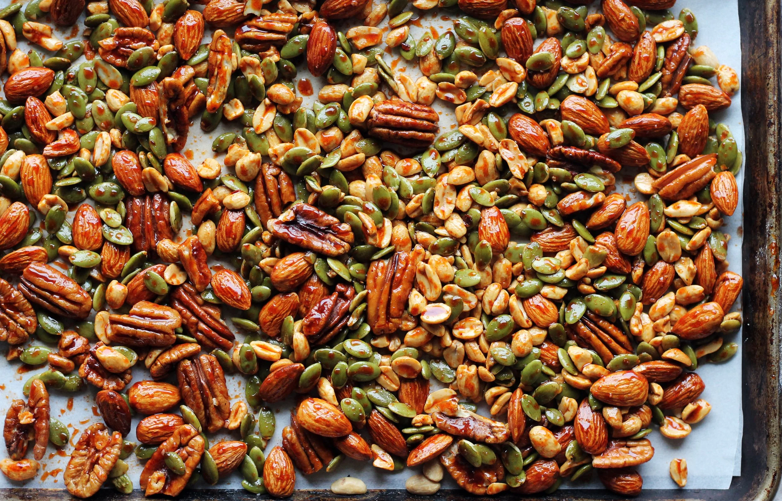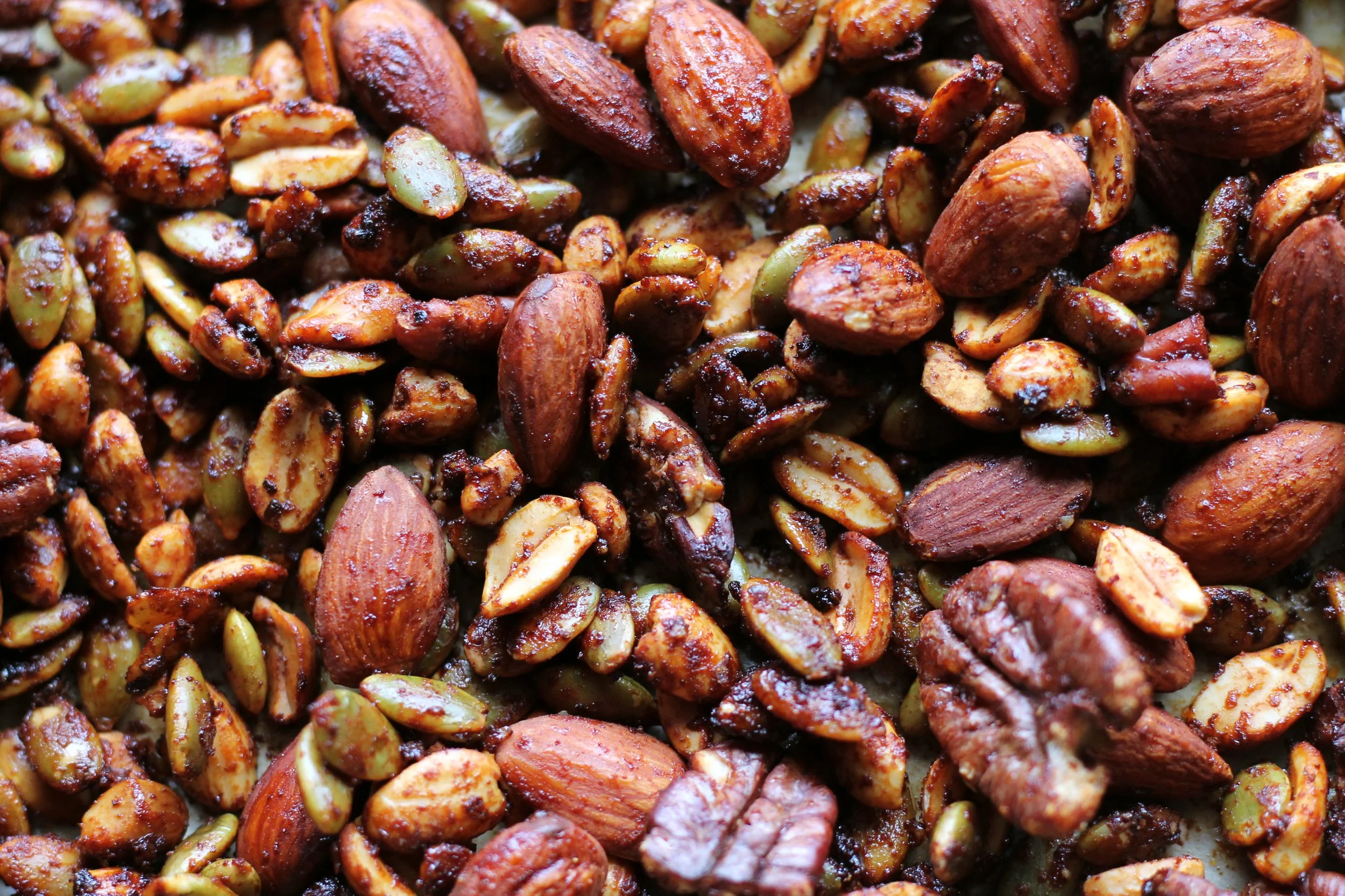 2 cups raw nuts (half cup each raw almonds, pecans, peanuts, and pepitas, or any combination that you like)