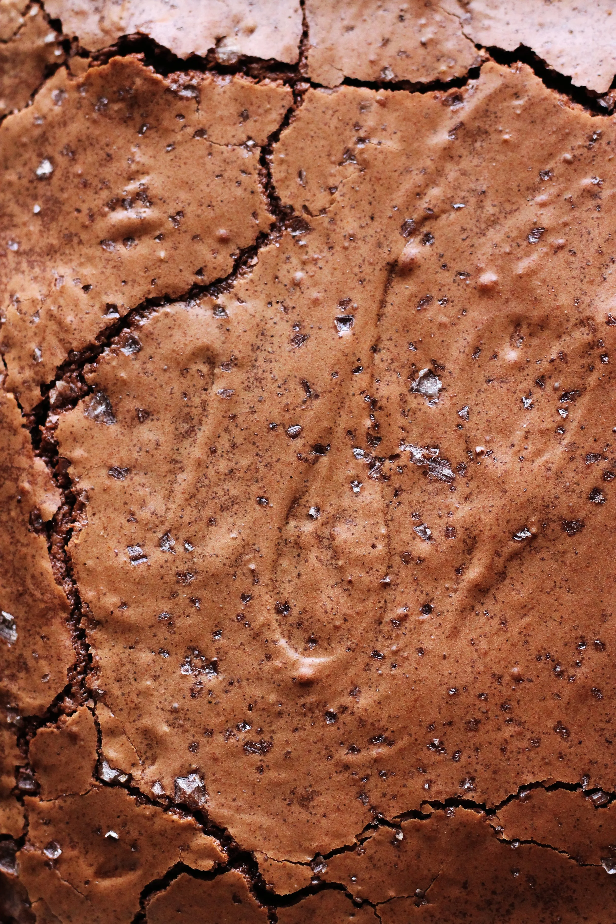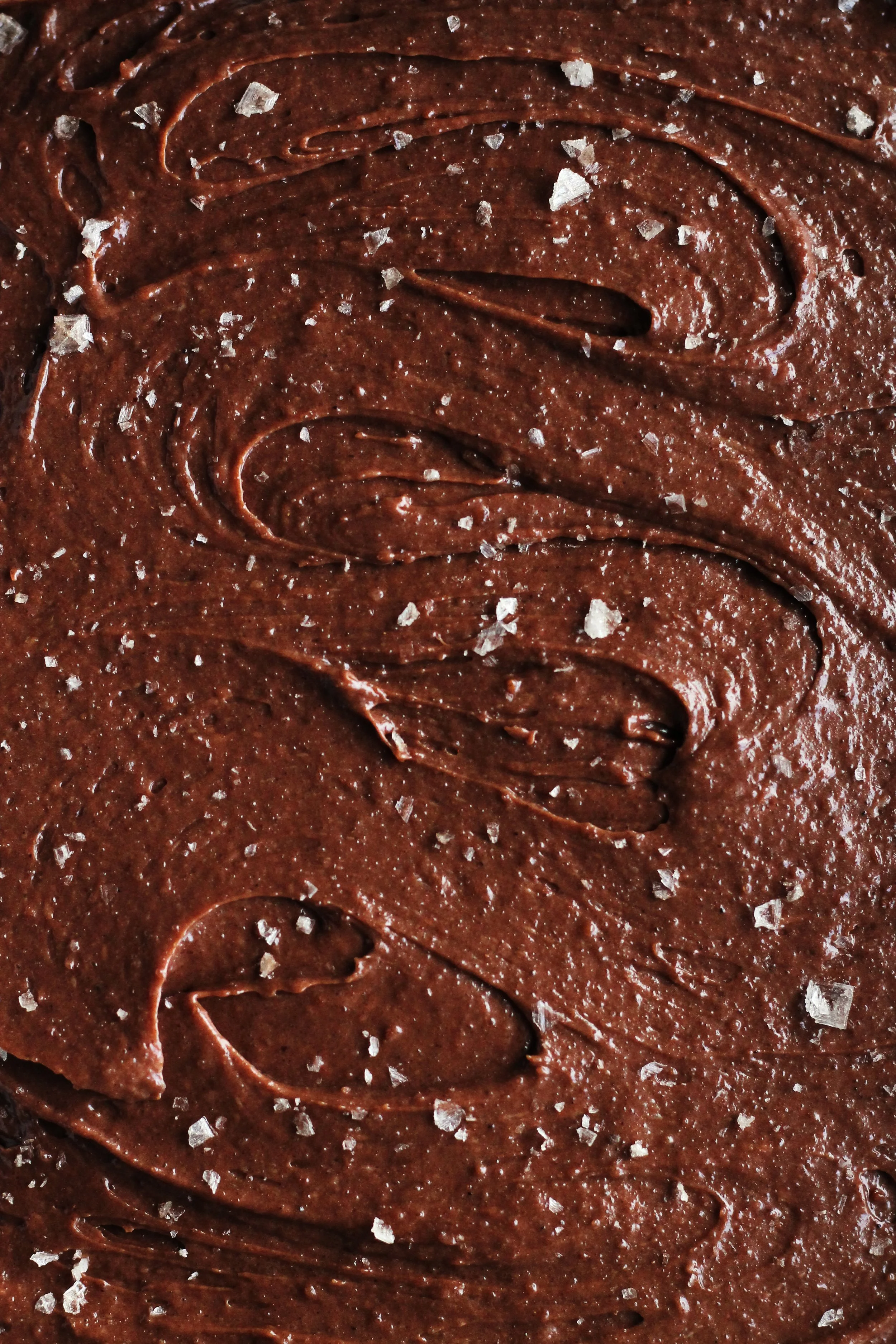 Transfer to your prepared pan, smoothing the surface with the rubber spatula. Sprinkle the top with smoked sea salt or flakey salt of your choosing (optional). Bake about 25 minutes. The middle should still be a bit squidgey and the top should be shiny and cracked. Let cool completely in the pan, then lift out by the edges of the paper and cut into squares.